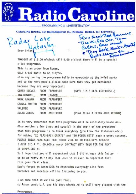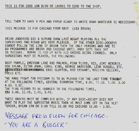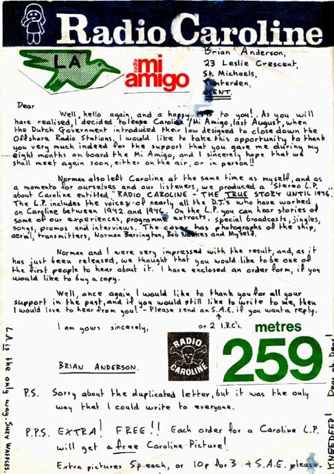 When I left Radio Caroline I lived in the Hague for 4 months getting stoned and eating cheese rolls. AMAZINGLY myself and Norman Barrington were the only ones on board in 1974 who could - or could be bothered to - EDIT!!! We were the only ones who recorded and saved material.